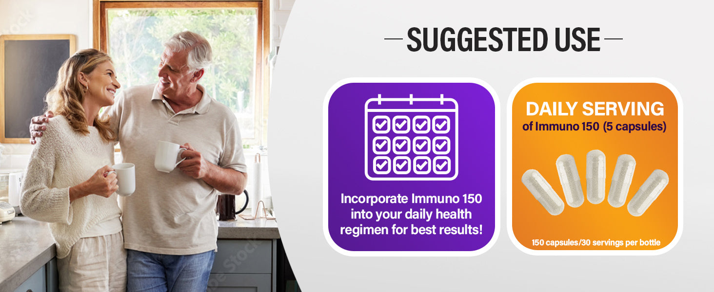 Immuno150 is manufactured under strict quality standards to ensure purity, safety, and consistency. Each batch is produced in an FDA-certified facility, using Kosher-certified and USDA-approved ingredients. Our formula is OMRI-listed, UDAF-inspected, and compliant with DSHEA guidelines. Every capsule is third-party tested for potency and quality, giving you trusted daily nutrition you can rely on.